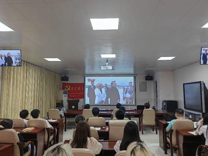 学习完《条例》之后,支部组织与会成员进行红色观影活动。本次观影的影片为中央时政纪录片《登高望远天地阔》,它主要聚焦于习近平总书记的欧洲之行。这部纪录片让大家更加深入地了解了中国外交的内涵和精髓,也让大家更加坚定了对中国外交政策的信心和支持。