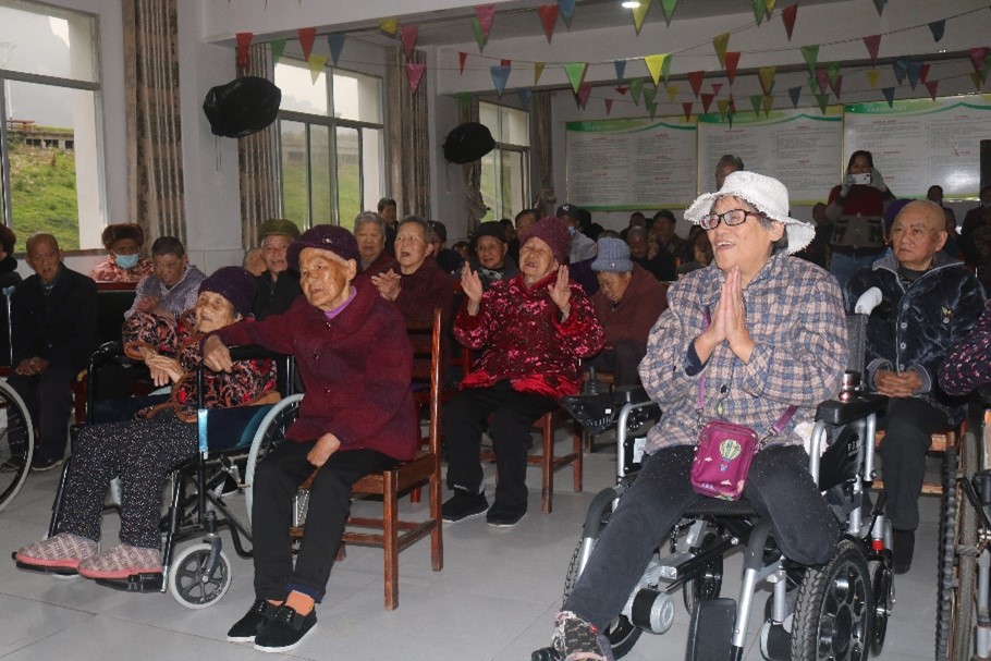 随后,志愿者们在敬老院开展了丰富多样的献爱心慰问活动。在娱乐活动室内,志愿者们表演了魔术、合唱、广场舞等节目。欢声笑语中,一位身患残疾的奶奶也伴着歌,打着节拍,与表演者们挥手互动;其中的石爷爷更是激情澎湃,为志愿者们连续带来几首他的拿手好曲儿。