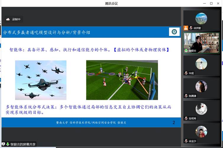 2022年12月1日下午2:30,学院邀请暨南大学信息科学技术学院/网络空间安全学院张银炎教授开展学术讲座。张教授系统介绍了分布式多赢者通吃模型设计和相关分析方法,最后学院师生和张教授就相关问题进行了讨论。