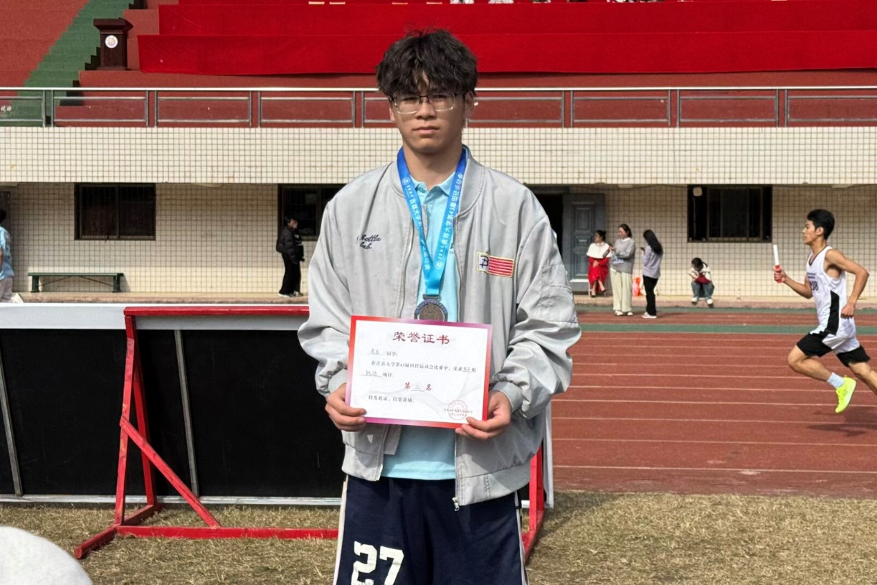 赛场上,健儿们的身影格外耀眼:短跑选手全力冲刺时的咬牙坚持,长跑队员克服疲惫的稳步前行,接力赛中队友间默契的交棒配合,跳远、跳高项目里一次次挑战极限的尝试,不仅赢得了现场观众的阵阵欢呼,更诠释了“更高、更快、更强”的体育精神。场外,公司志愿者团队及时提供补给与服务,拉拉队用呐喊为选手助威,师生同心的氛围让赛场充满温暖。公司参赛队员凭借顽强拼搏的精神,在赛场上屡创佳绩,最终斩获男子团体总分第八名及优秀组织奖称号,其中2024级软件工程2班虎岳同学在男子跳远项目中获得第三名的好成绩,展现了扎实的运动功底与突破自我的决心。