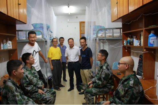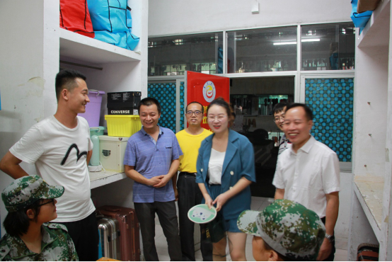 本网讯(邓腾)为了解新生面貌,帮助新生更快地融入老员工活,9月8日晚19时30分,软件公司党委书记李爱华、副书记李军、副经理徐洪智、学工办主任宁小浩、新生军训指导员王喜元及2019级新生班主任老师在学院员工会的陪同下一起走进员工宿舍看望2019级新生。