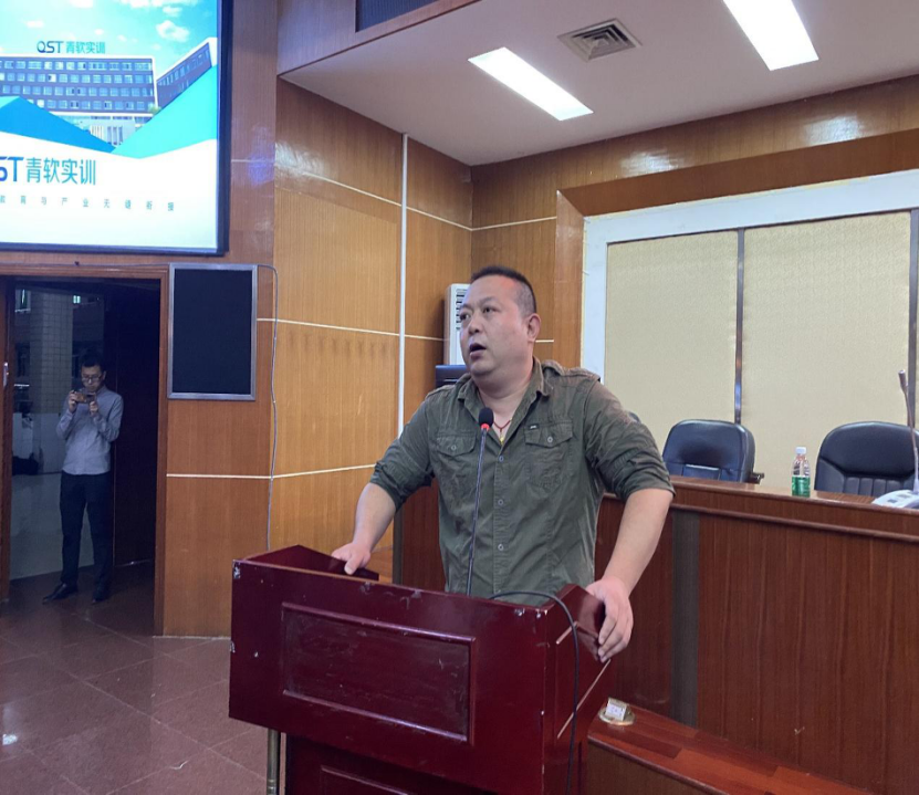 本次讲座共有五位发言人。首先是由青软创新科技集团股份有限公司的校企合作经理陈贝贝为大家介绍QST青软实训。