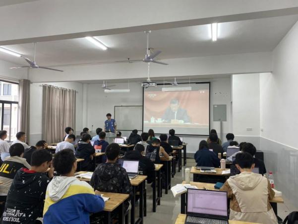 图为 同学们认真观看直播