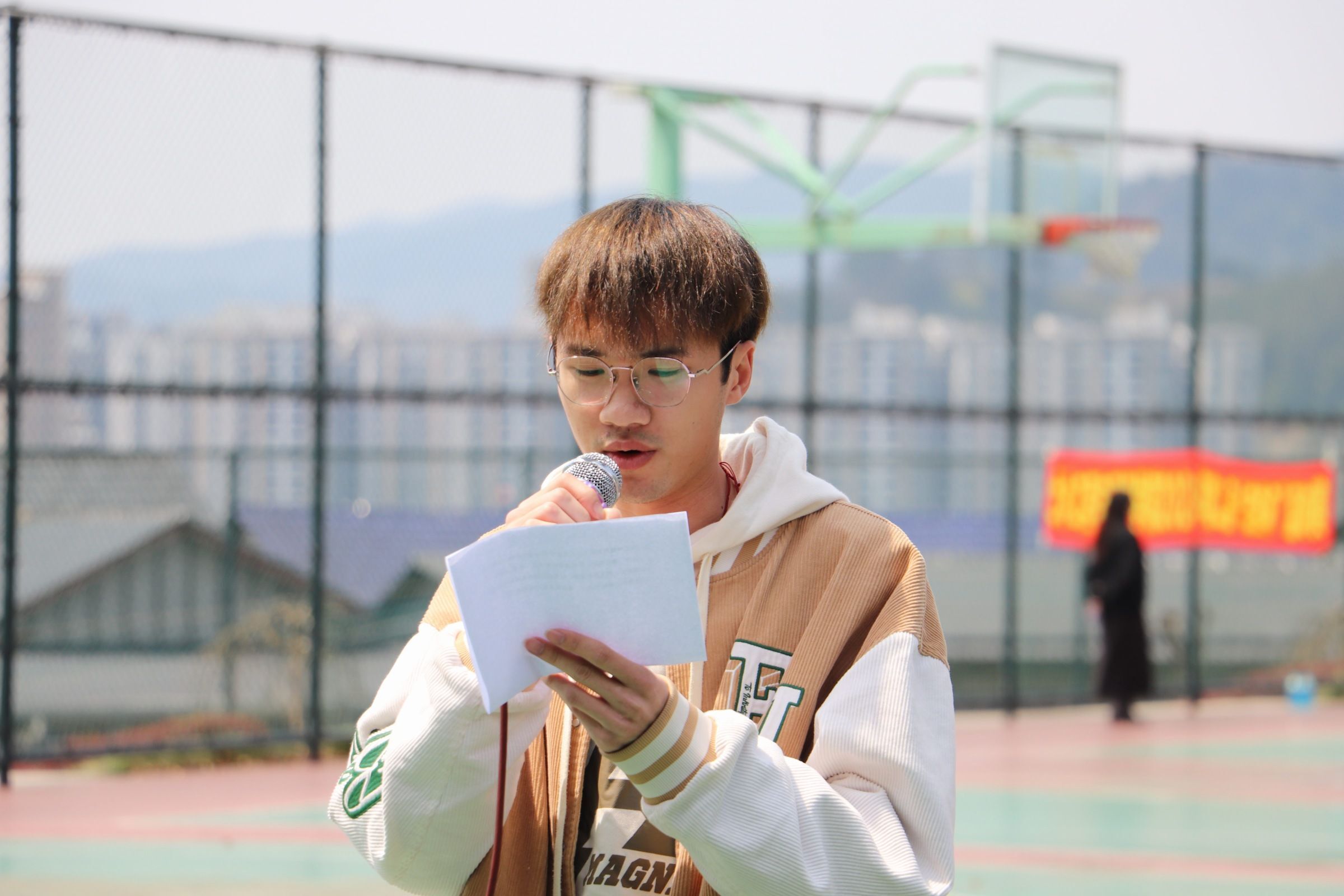 紧接着,运动员代表姚亮与裁判员代表蒋星海相继登台宣誓,他们郑重承诺,全体参赛队员和裁判人员将严格遵循比赛规则与道德规范,确保本次篮球联赛公平公正、秩序井然地进行。