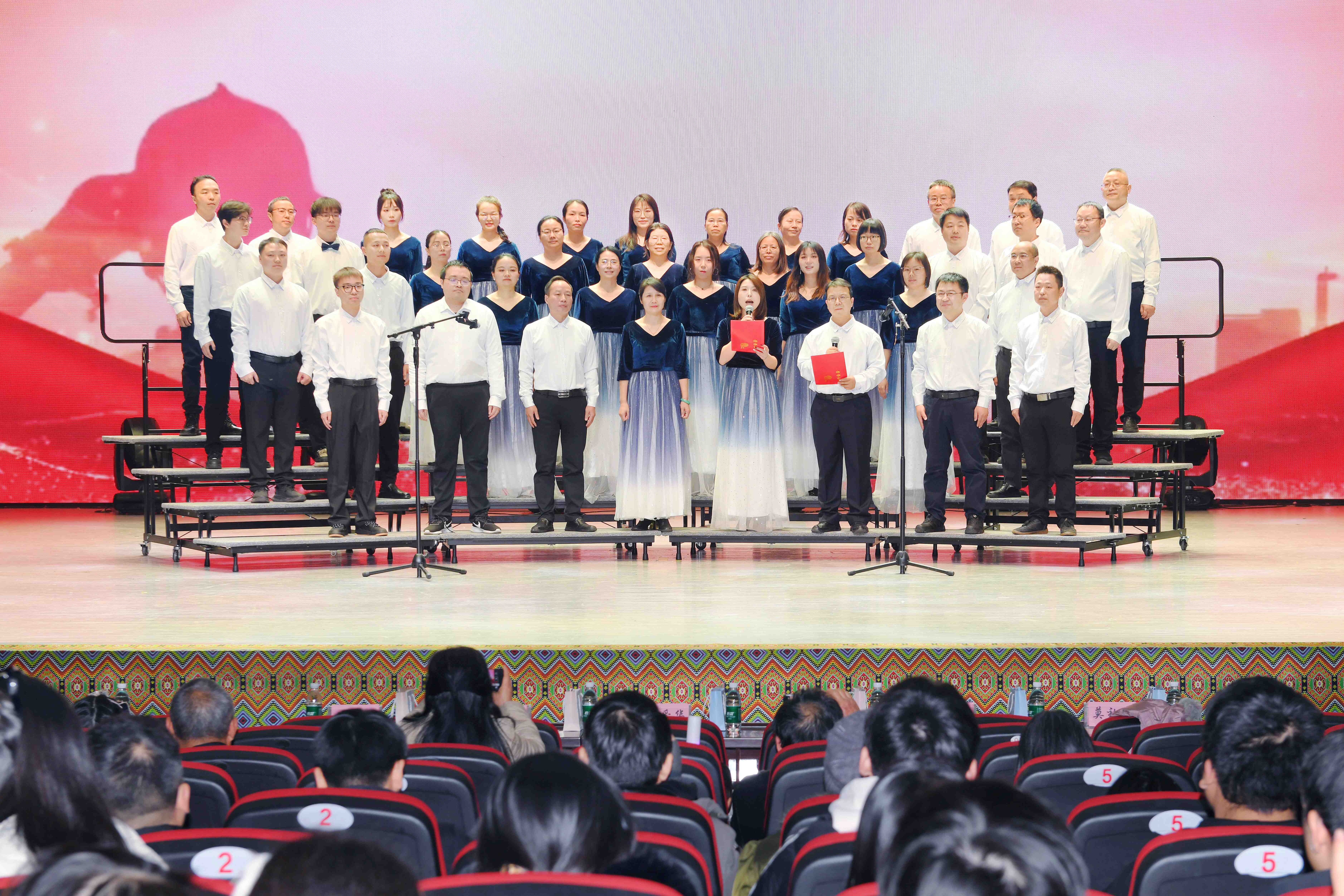 本次晚会围绕“艺”马当先、“程”风破浪、“码”到功成三大篇章展开,形式多样、内涵丰富。晚会在全院教职工激昂嘹亮的合唱《团结就是力量》中拉开序幕,彰显了学院团结进取的集体风貌;民族舞《丝路回响·远古的呼唤》、新疆舞《葡架蝶欢》展现了中华民族文化的多样性与交融之美;歌曲串烧《扬帆遇见光,隐翅启新章》由教师代表倾情演绎,传递出教书育人、同心奋进的教育情怀;员工自编歌舞剧《南极直播间》、T台秀《我在吉大当团播》等节目巧妙融合专业特色与艺术创意,生动体现计算机学子的创新活力;晚会最终在研究生代表深情合唱《我爱你中国》的歌声中圆满落幕,表达了青年一代对祖国的热爱与祝福。晚会全程穿插线上抽奖、现场互动等精彩环节,欢声笑语与阵阵掌声交织回荡,浓厚的节日氛围浸润着现场每一位观众。