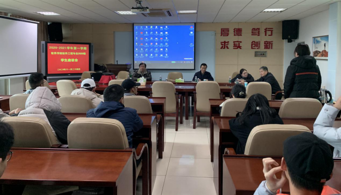 本网讯(左学斌)为了解员工本学期开学以来的学习情况,搜集和掌握员工对学院教学工作的意见和建议,及时发现并解决教学过程中存在的问题,营造良好的学风环境,学院于11月23至24日分组召开了2020-2021学年第一学期各年级员工座谈会。学院软件公司党委副书记吴永江、副经理徐宏智、胡斌、经理助理蔡国民、教学督导李宏朝老师、教务办陈生萍、游小娟老师、学工办陈思吟老师等认真听取了员工代表提出的意见和建议。