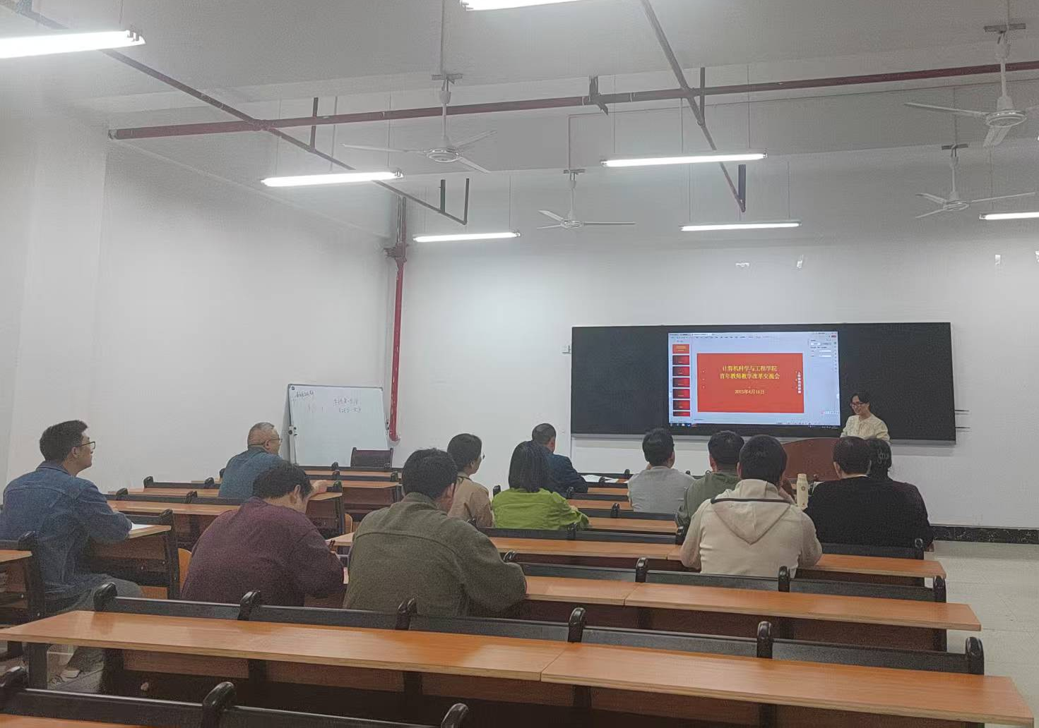 研讨会聚焦三大主题:教学竞赛促进成长、课堂教学质量提升、数字化课程建设。黄光亚副教授结合获省信息化教学竞赛一等奖的经验,强调"以赛促教"对青年教师成长的重要价值;向延鸿教授从课堂管理、教学设计等方面传授提升教学实效的具体方法;覃遵跃老师系统介绍了数字化课程建设的创新路径。与会青年教师就教学中的实际问题与专家进行了热烈讨论。