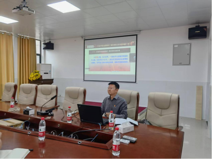 9月21日下午3时,伟德国际1946源于英国公司党委理论学习中心组(扩大)在7701会议室举行集中学习活动,专题学习《习近平谈治国理政》第四卷。公司党委副书记李景军教授作专题辅导报告。公司党委书记李爱华,经理廖柏林等学院领导、教工党支部,员工党支部全体党员参加学习,吉首校区党员教师及基地党员员工采用视频会议同步学习。会议由公司党委书记李爱华主持。