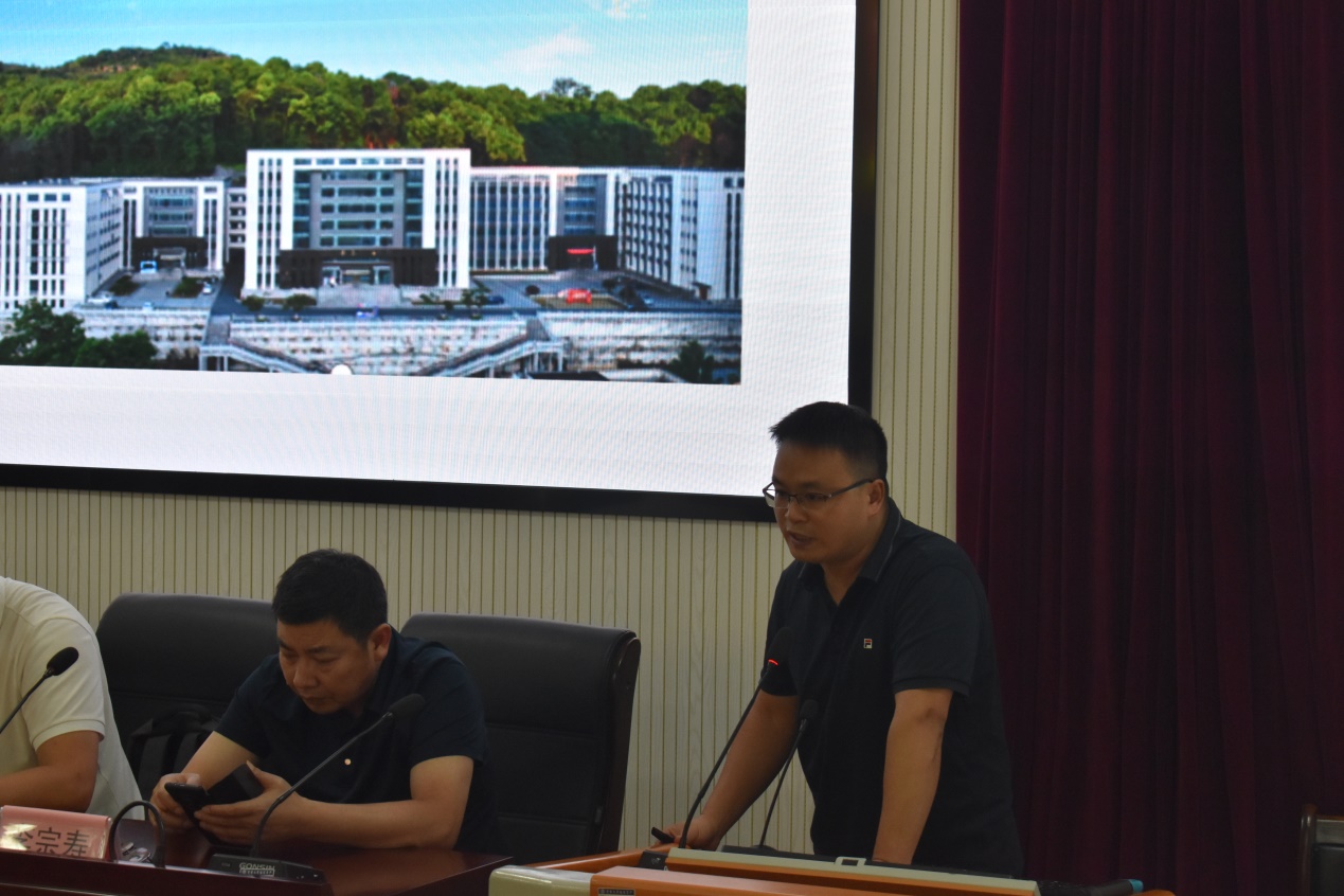 图为廖柏林介绍学院办学情况