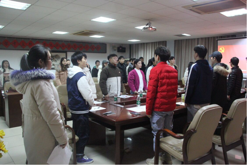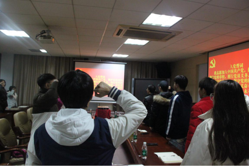 图为葛凯文同志带领全体成员重温入党誓词