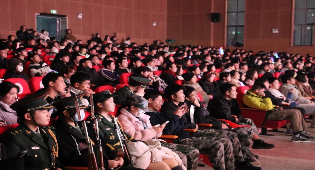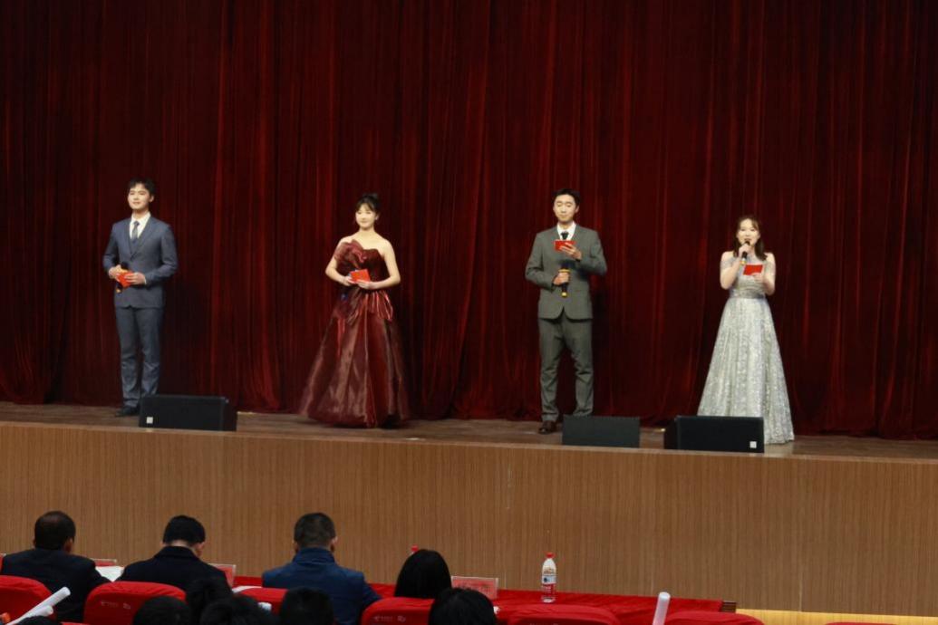 晚会更上一层楼的部分是展现校园时光的光影幕布剧《致青春》的精彩呈现。这场生动形象的演出将我们老员工的青春展现得淋漓尽致。还有魅力四射的乐队表演《Always Online》和舞蹈串烧《What Is Love & whistle & Gee》,激发了现场观众的热情。李景军副书记和周良老师的笛箫合奏《小放牛、梅花泪和马桑树儿搭灯台》更为观众带来了一场古典音乐的饕餮盛宴。他们手中的笛箫在空气中奏响悠扬的旋律,如一股清新的春风拂过。轻快的旋律勾勒出田园牧歌的画面,仿佛让人置身于宁静的乡野景致中。悠扬的音符将人们引入一片温馨的意境,如梅花般的音律在空中盛开。最后,奏响了一种欢快活泼的氛围,仿佛在夜晚的马桑树下跳动的灯火,为整个场馆点缀出欢腾的光影。情景剧《强军之路》和朗诵《盛世中国》进一步激发了大家的爱国情怀,将整个晚会氛围推向了高潮。美好的时光总是匆匆而过,最终,晚会在激扬的旋律中圆满落幕。