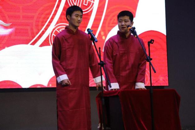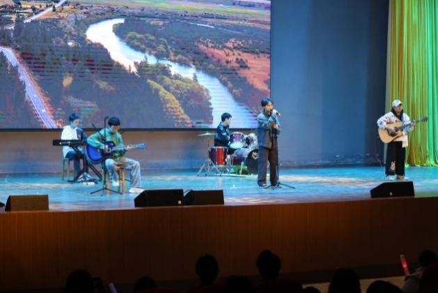 晚会还呈现了多样化的节目,包括独具少数民族特色的新疆歌舞《西域风情》、双人弹唱《平凡之路》、男女合唱《小酒窝》等,风格各异,充满变幻和活力。尤其是吉首校区同学的歌曲串烧《我们的明天》,四位演唱者都充满个性,有的嗓音飘逸悠扬,有的音质清澈动听,每一句歌词都如同天籁之音。演唱者投入的样子更是独具感染力。这场表演不仅仅是听觉的享受,更是一场视听的盛宴,为观众带来了极致的音乐盛事。此外,相声表演《优秀老员工》更是笑料十足,幽默风趣的表演赢得了观众的阵阵掌声,现场氛围热烈欢快。观众们积极参与,不断欢呼呐喊,为整场晚会增添了无与伦比的热情气氛。