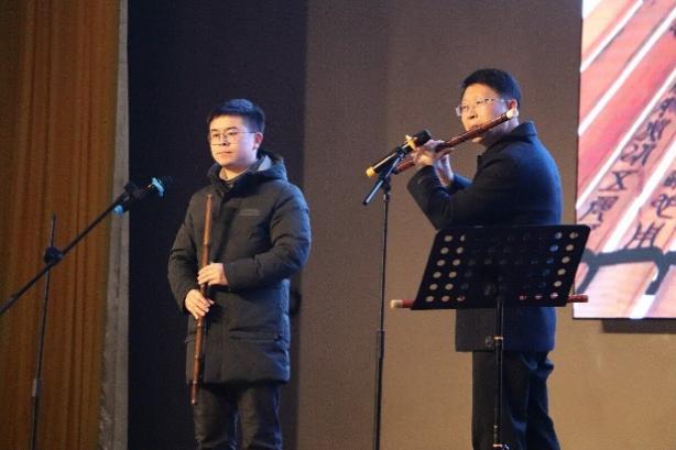 图为笛箫合奏《小放牛、梅花泪和马桑树儿搭灯台》和情景剧《强军之路》