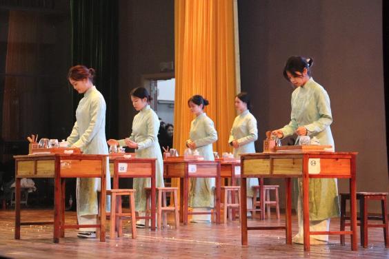 晚会在热情的开场舞中拉开了序幕。整场晚会的节目内容流行与古典兼收,温情与火热并举,形式多样,精彩纷呈。其中展现中华优秀传统文化的节目有:茶艺表演《邀月品茗》、京剧《打严嵩》等,“半榻梦刚回,活火初煎新涧水”,茶香飘逸,技艺精湛,茶艺表演让人心旷神怡;京剧艺术博大精深、风格独具,唱腔抑扬顿挫,节奏有力。