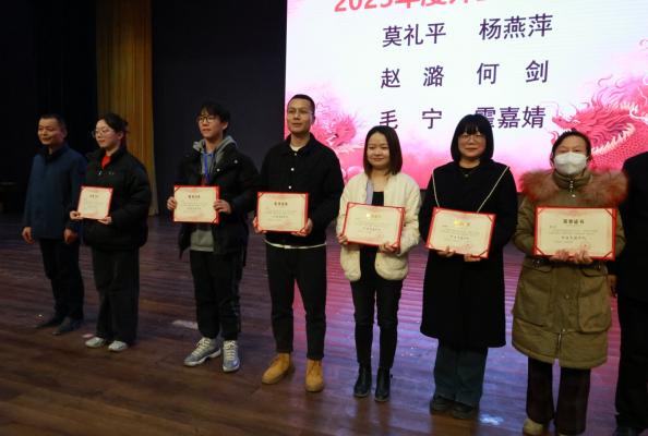 晚会中还穿插了表彰环节,学院对优秀通讯员、外宣先进个人以及优秀班主任进行了表彰。首先,由学院副经理覃遵跃教授为大家宣读表彰文件,紧接着,领导上台分别颁发了优秀通讯员、外宣先进个人以及优秀班主任的奖项。这些获奖者不仅是先进中的代表,更是标兵中的旗帜,他们通过实际行动诠释了“优秀”的真正内涵。我们由衷感谢这些默默耕耘、无私奉献的先进个人,他们为学院的发展贡献了大量的心血。