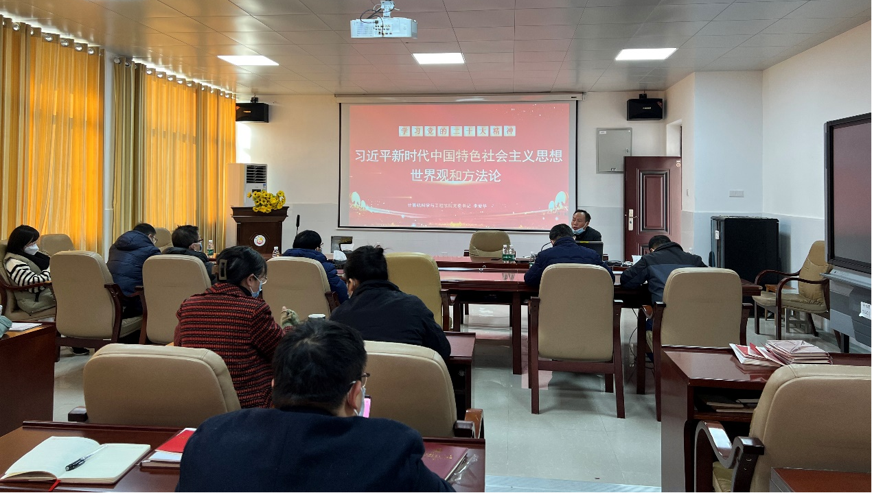 李爱华围绕党的二十大报告中核心要义,从过去五年和新时代十年的伟大变革在在党史、新中国史、改革开放史、社会主义发展史、中华民族发展史上具有里程碑意义详细论述了的习近平新时代中国特色社会主义思想世界观方法论的实践依据;从“十个明确”、“十四个坚持”、“十三个方面成就”深刻阐明了习近平新时代中国特色社会主义思想世界观方法论的科学内涵;从中国具体实际和中华优秀传统文化方面深刻揭示了“两个结合”是习近平新时代中国特色社会主义思想世界观方法论的不断丰富发展的成功密码。李爱华还结合学院中心工作及当前实际情况,要求党员同志切实担负起立德树人职责使命,用习近平新时代中国特色社会主义思想凝心铸魂,以实干奋进,谱写学院发展新篇章。